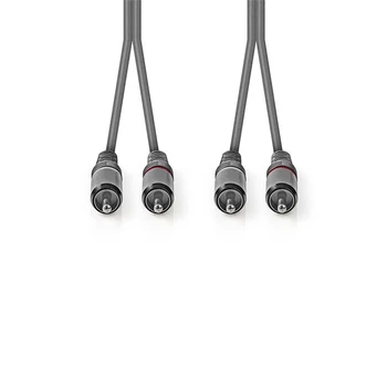 Nedis COTH24200GY15 sztereo audio kábel, 2x RCA dugó, 2x RCA dugó, Nikkelezett, 1,50 m, rugalmas
