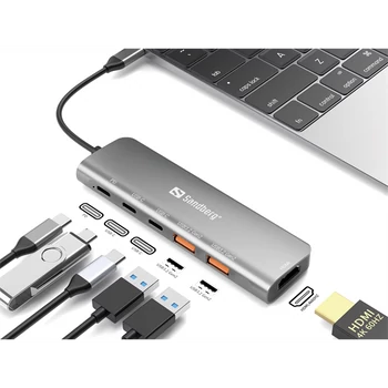 SANDBERG USB-C Dokkoló HDMI + 2xUSB-A + 2xUSB-C + PD100W